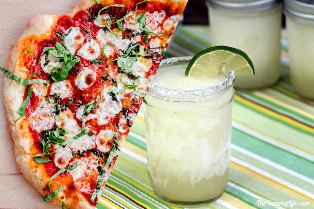 5. Pour into the salt-rimmed glasses and enjoy. Best served with a side of guacamole, don’t you think? Or even a Margarita pizza!